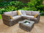 The Georgia Corner Group Sofa Set with Ice Bucket provides the perfect setting for outdoor relaxation. The set includes a corner sofa made up of 2 parts, and it comes with a low glass-topped coffee table with ice bucket insert. The table includes a wicker lid to cover the ice bucket when it is not being used. The set includes all beige seat cushions and back cushions as shown.